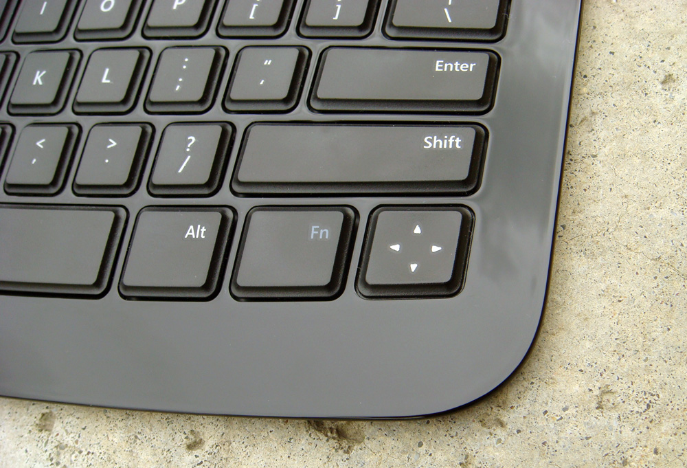 I’m dedicating an entire section to this frustration just because of how much it truly hinders this product from achieving greatness. Microsoft decided that it would be a great idea to just go ahead and throw out the direction keys. Apparently in the early stages of designing the Arc Keyboard it was just too much to keep the four, helpless keys during the scaling-down process. They have instead been replaced by a direction pad, as you can see in the images. This pad is awfully reminiscent of a cross between those on older cell phones and the D-pad of a Sega Genesis controller. If you don’t see this as a “big deal” now, you will immediately realize just how dependent you are on the arrow keys after using this product. You will also notice the overextended right-shift and alt keys which fill in the space vacated by the removal of the direction pad. There is no reason, therefore, why the arrow keys were removed for a smaller device, further user convenience, or otherwise. A consumer usually likes to use his or her keyboard for typing, not texting. I will admit, ranting aside, this does not ruin the device overall, but it does limit it greatly in terms of use and purpose.