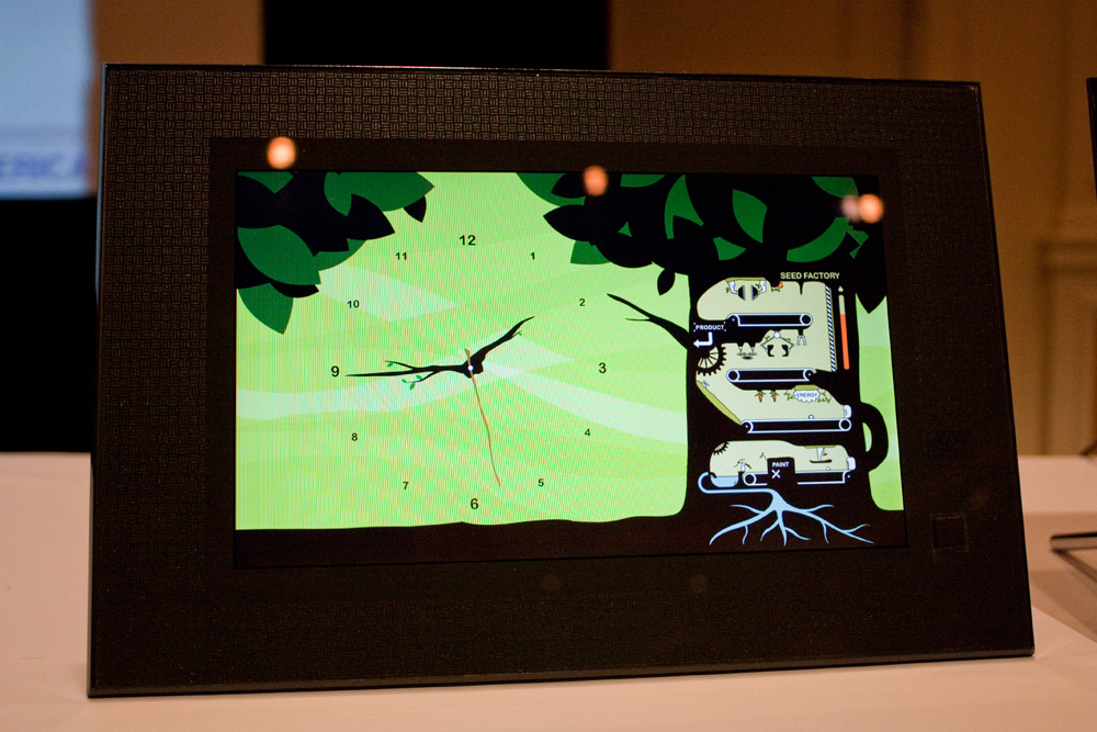The first part of the Casio Press Conference was presented by the CEO and President Kazuo Kashio. He spoke about a new digital art frame that creates paintings from digital photos. It does so by applying filters like pastel, watercolor, graphic oil, and airbrush to the photos in the frame.