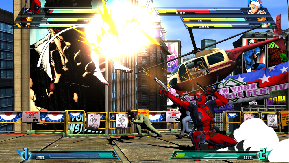 Capcom finally gave fans the opportunity to truly experience the way the game feels compared to the previous two titles and hints at how large the roster will be. Plenty of locked character slots suggests MvC3 will be as large as suggested, with around 30 choices. The ones available in the demo were Morrigan, Deadpool, Wolverine, Hulk, Chris Redfield, Cpt. America, Iron Man, Hulk, Ryu, Deadpool, and Felicia. Every character was beautifully detailed and the environments maintained the same level of vibrant colors as its predecessors.
