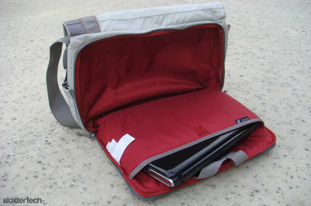 Unlike most messenger bags which are fairly monotone, the Tarmack I received came in a optimus grey color scheme. However for the more traditional, the bag is also available in all black. While the grey colors were somewhat dull, it will probably fit well for commuters, students, or travel. Business professionals on the other hand should probably opt for the black mode. For those concerned with susceptibility to dirt and stains, I was impressed to how resistant it was despite the light colors. I also like Jansport’s style which I find quite contemporary and modern. For instance, it features a bright red inside that will definitely attract some eyes.