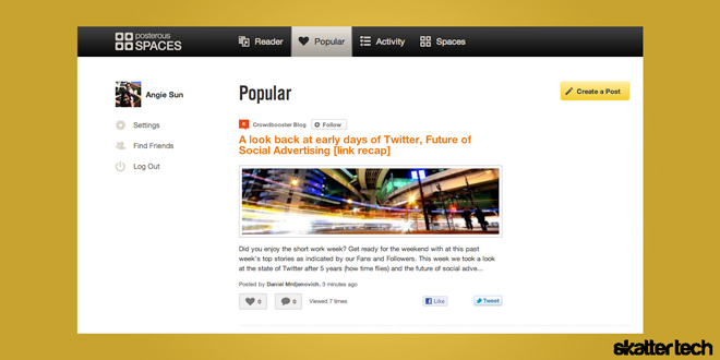 We recently caught up with Posterous CEO, Sachin Agarwal, at Tech Crunch Disrupt and had a chance to learn about the company’s new product, Spaces. The new service allows users to create individual “spaces” or microblogs for each group of users in which members can share content. Along with Spaces, Posterous also refreshed its look by redesigning it’s feed and adding an activity stream.