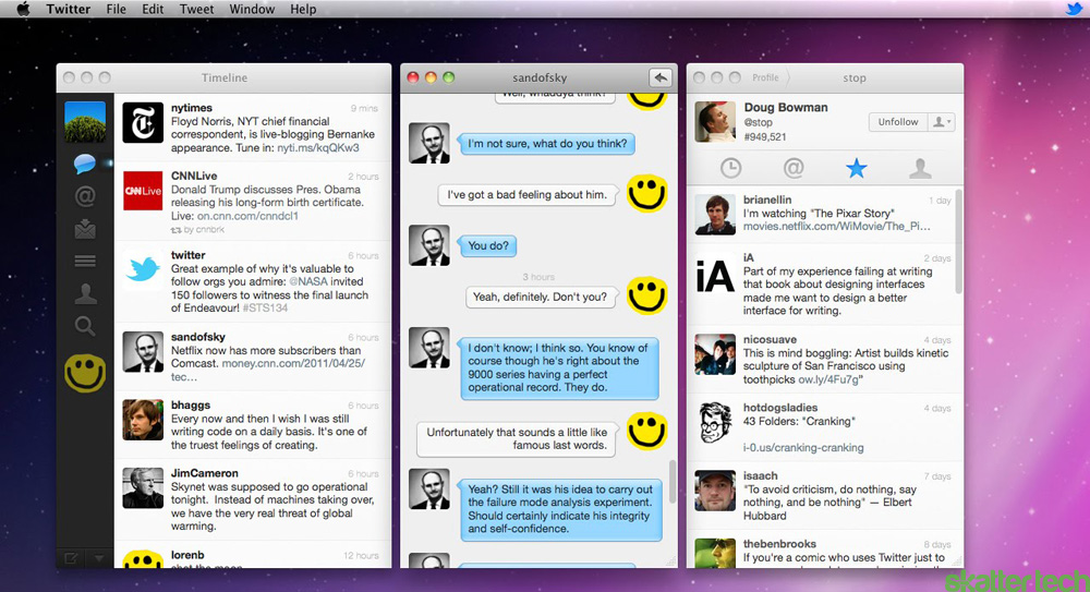 With regards to Twitter for Mac, today’s update is the first major software update released since Twitter acquired Tweetie and its publisher Atebits back in April 2010. The most prominent addition is the new multi-window feature, which allows users to view things like their @mentions, timelines, lists, and multiple timelines, all at once in different windows. Twitter has also made this feature easy to access: simply go the Windows menu and scroll to the aptly named “Open New Window” option.