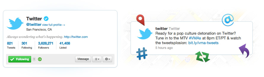 Each type of activity displays differently in the stream. If a user follows someone new, the user they followed shows up in a small box with a thumbnail photo, username and name, and a Follow button. Just thumbnails appear if they follow several users. Favorites and retweets show up as blockquotes. These expand into the sidebar like regular tweets if you click them. Another great feature about the Activity feed is it updates in real-time. Facebook’s news feed supposedly does too, but I find it slow and inconsistent.